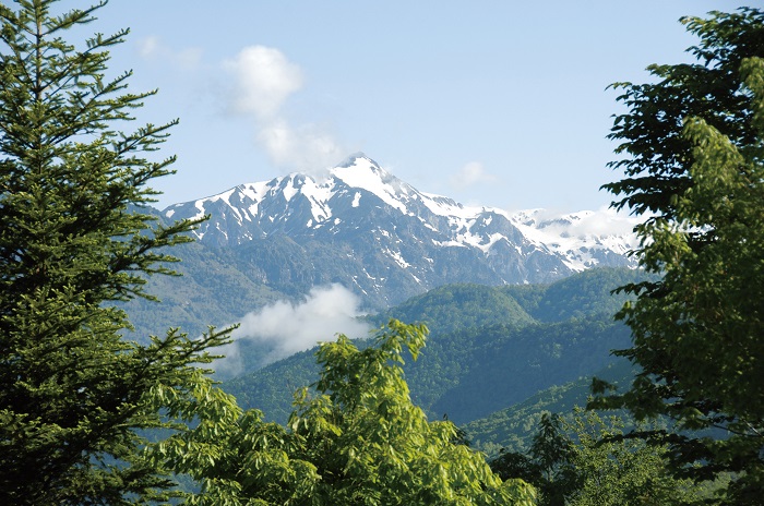 新穂高温泉の北西にそびえる独立峰。標高は2,898mで、県境を接しない山としては岐阜県内の最高峰である。どこから見ても笠を伏せたような姿をしている。古くから信仰の対象とされた山で、江戸時代に円空(えんくう)上人(1632~1695年)が開山し、文政年間(1818~1829年)には播隆(ばんりゅう)上人が、山頂に阿弥陀(あみだ)仏を奉納し再興したといわれる。