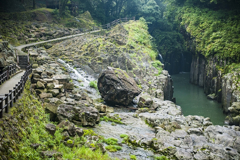 五ヶ瀬川水系の本流である五ヶ瀬川が阿蘇火山活動で噴出した火砕流を浸食してできた深いV字形の峡谷。浸食された峡谷は、平均で約80mの高さがあり、東西約7kmに渡って続く。1934(昭和9)年には「五箇瀬川峡谷」として国の名勝・天然記念物に、 1965(昭和40)年には祖母傾国定公園(そぼかたむきこくていこうえん)の一部に指定された。峡谷内には高さ17mの真名井の滝があり、高千穂峡随一のみどころになっている。このほか、50~100mに及ぶ柱状節理の絶壁や甌穴群などもある。